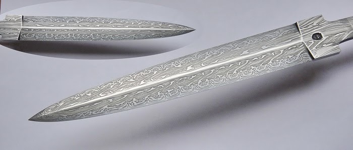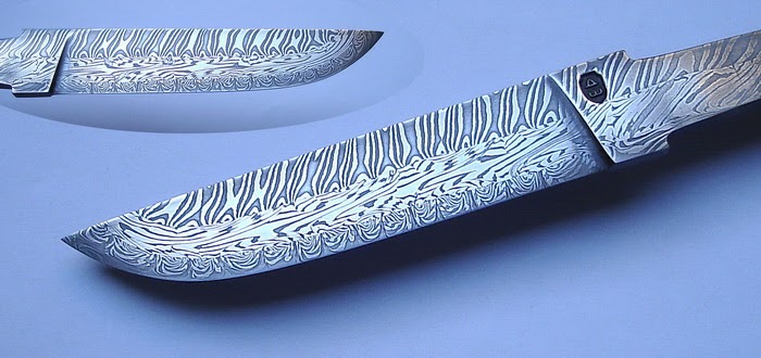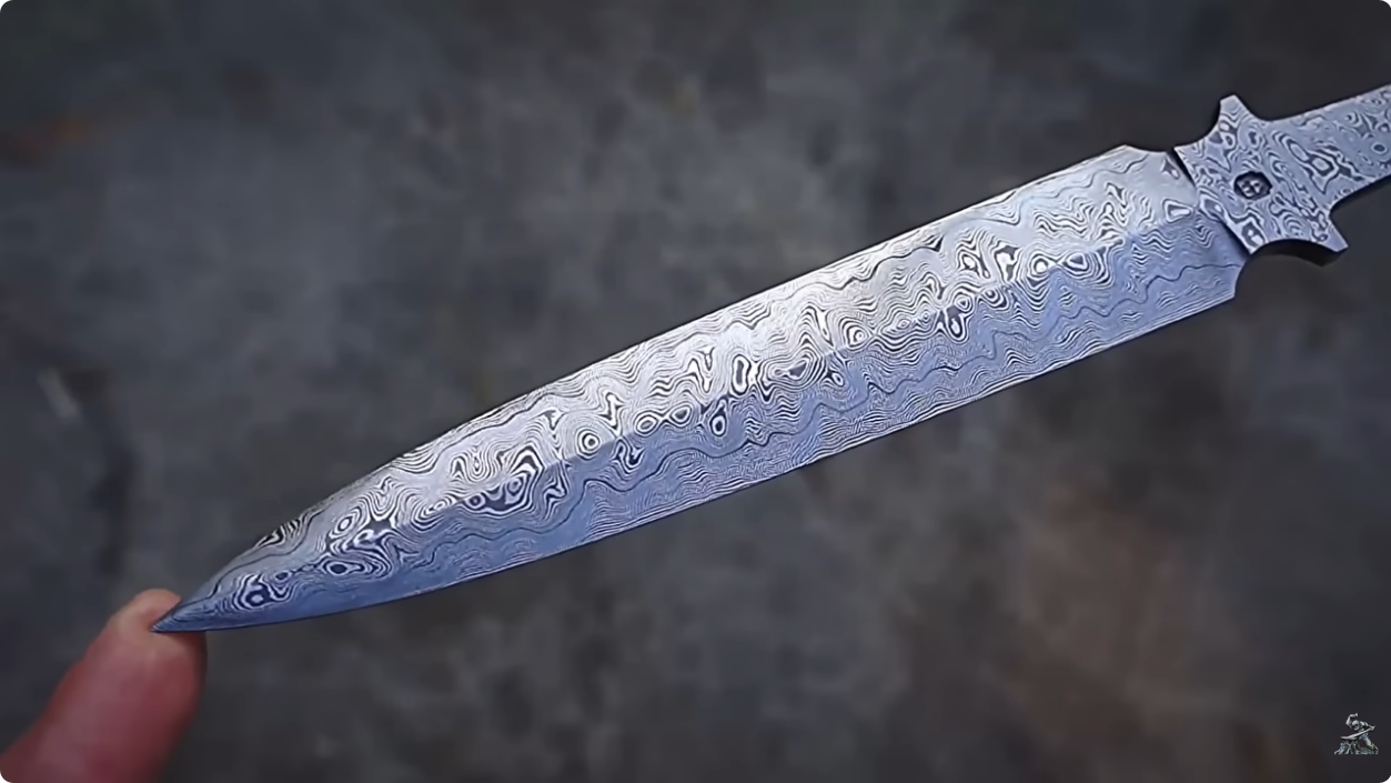 Дамаська сталь виготовлена ​​із збитої гіперзвукової ракети кинджал (аеробалістична ракета Х-47М2). Із паливного бака. Експерименти показали, що ця сталь активно витягує вуглець із сусідніх сталей за рахунок своїх лігірующіх добавок. Тому друга сталь у початковому пакеті була напильник (сталь у12) з 1,2% вуглецю. Отримано твердість 57 од. за Роквелом. Дякуємо за підтримку у коментарях. Сьогодні 1341 день війни.